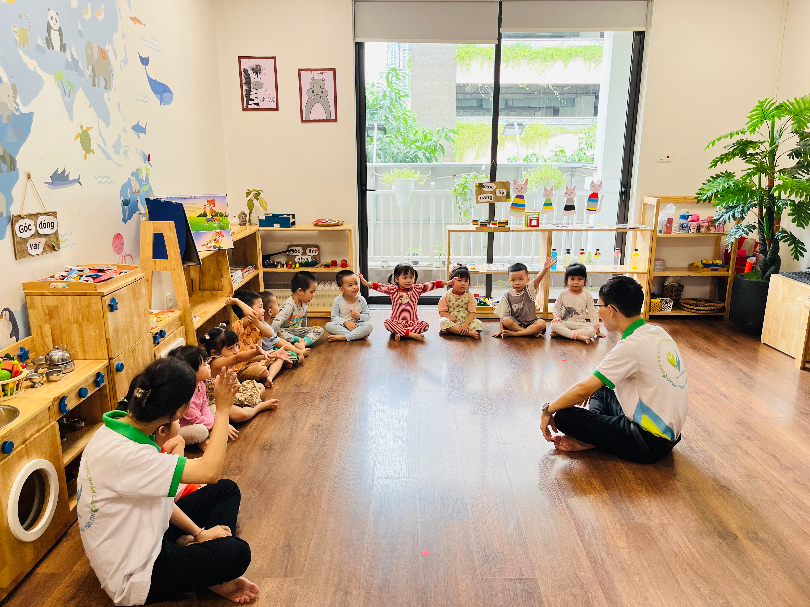 🌳 100% các phòng học được trang bị hệ thống đèn, quạt, điều hoà, máy chiếu, bảng tương tác điện tử, sàn gỗ cap cấp và đồ dùng, đồ chơi giáo cụ đa dạng với chất liệu gỗ cao cấp đảm bảo tính thẩm mỹ, công năng sử dụng phù hợp với nhận thức và kĩ năng phát triển của từng độ tuổi.